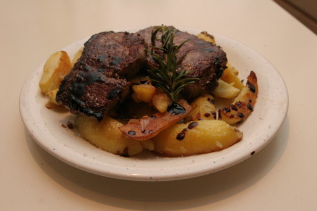 Noch kurz in den Aldi rein gestolpert. Super aromatische Schalotten. Sehr schmackhafte Kartoffeln der Sorte Charlotte aus .fr. Rosmarin aus dem Garten. Und die neuen g*** Steaks von Feinkost Albrecht. (Schmeckt, aber der Supermarkt des Vertrauens ist besser.) Kleine Reduktion mit Balsamico. Dazu ein Côtes du Rhône Villages aus Tulette (Hinterland von Bollène). Passabel ;-)